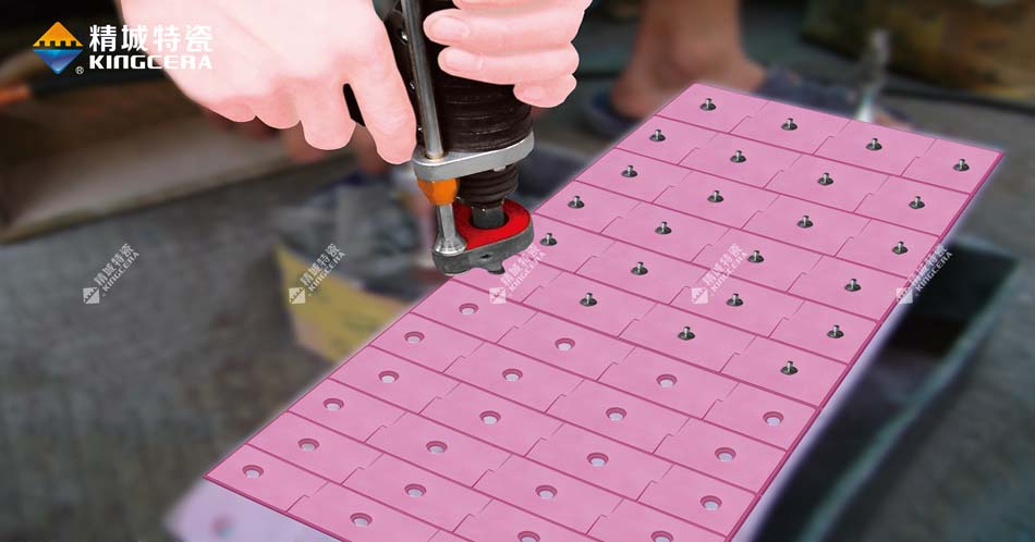 普通的陶瓷粘膠耐溫范圍在150℃以下,而精城研發(fā)的無(wú)機(jī)粘膠可以將這個(gè)耐溫范圍提升到350℃。如果溫度超過350℃且不高于500℃,我們可以用螺柱焊接安裝陶瓷。超過500℃則建議選用燕尾卡槽安裝陶瓷。